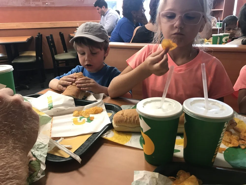 We picked up the rental car and everyone was starving, so we found a subway. Ben had fun ordering the sandwiches. He learned some new words like pickles, turkey, and etc.