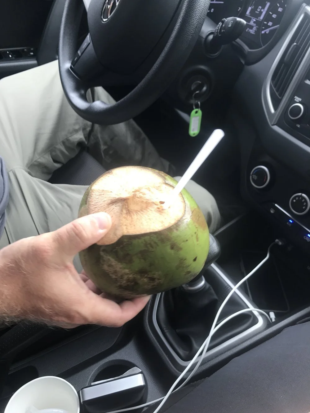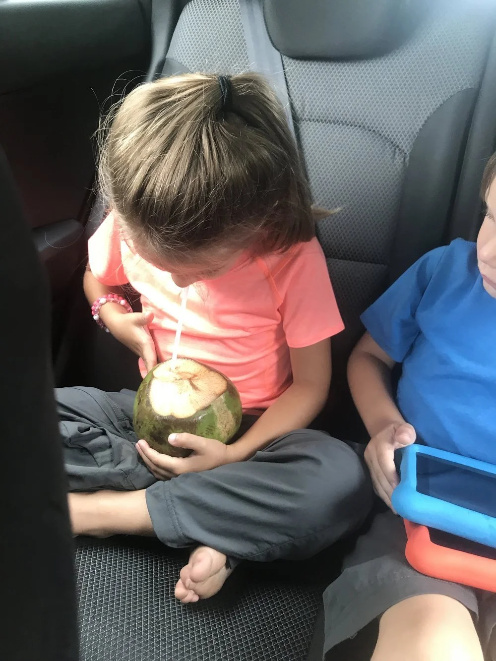 We headed to our destination. There were plenty of little fruit stands on the sides of the road the whole trip. We stopped and got to coconut waters, they were really refreshing ($1.00 for 2). We stopped and got 3 pineapples for $2, they are the best looking pineapples I have ever seen. I can wait to try one.