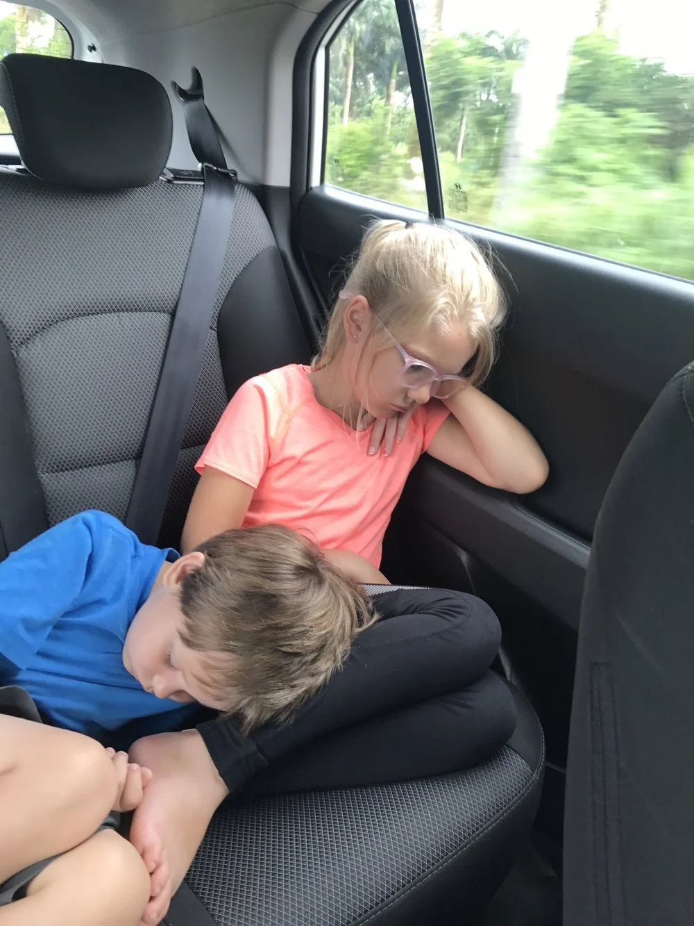 We took the kids swimming in the pool at our hotel. They had a blast and wore their self out. They came back to the room and passed out.