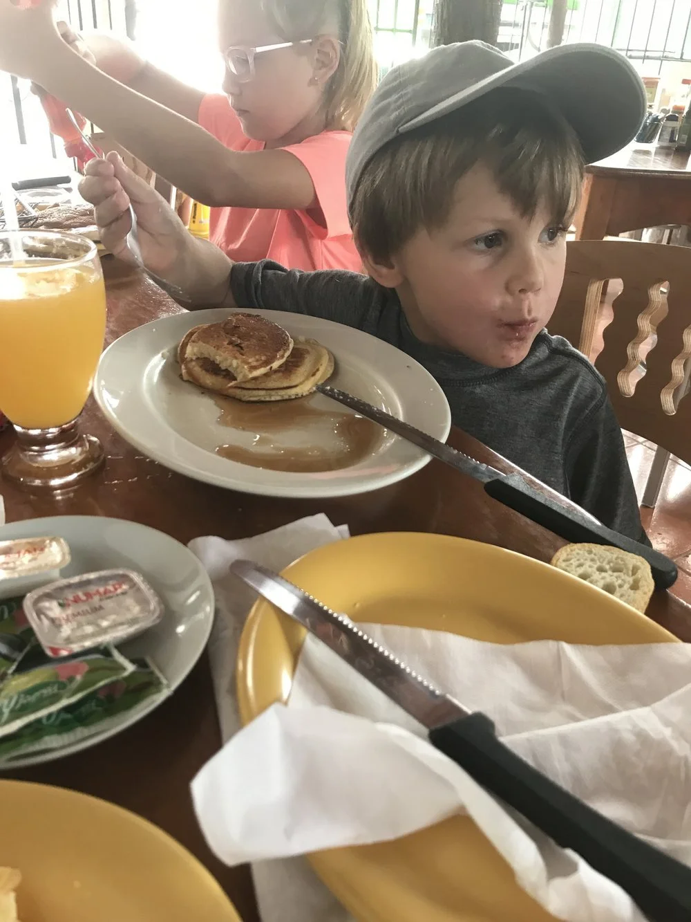 We got up and started our day. The kids were starving so we went to a little breakfast area called Soda Viquez. It was good food, the kids had pancakes and we have coffee and eggs. They gave us guava jam with our toast, very sweet jam. We left there and drop another load of clothes off to wash while we went hiking.