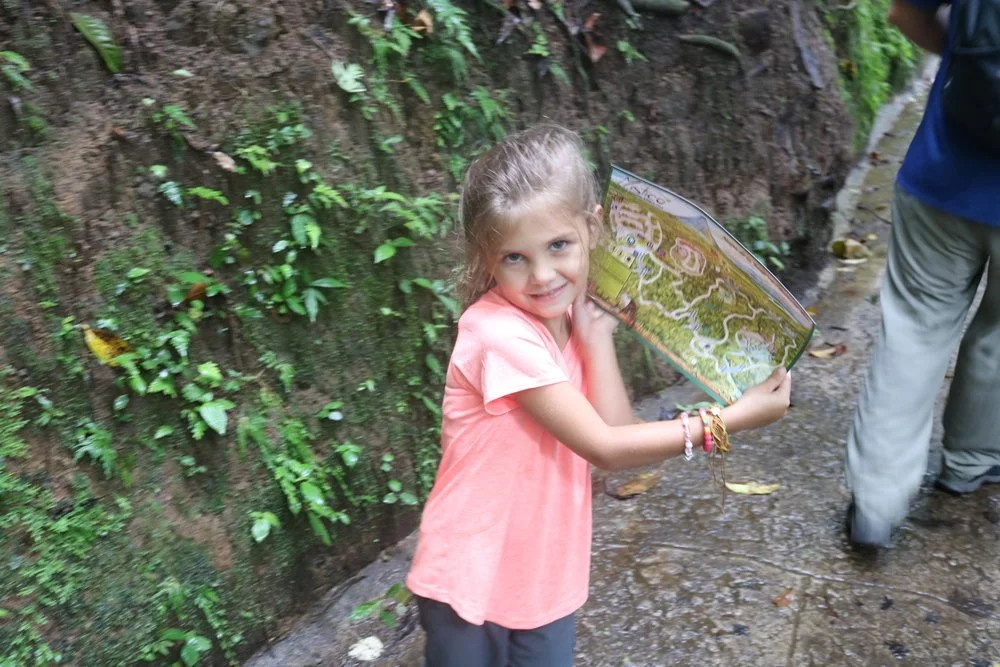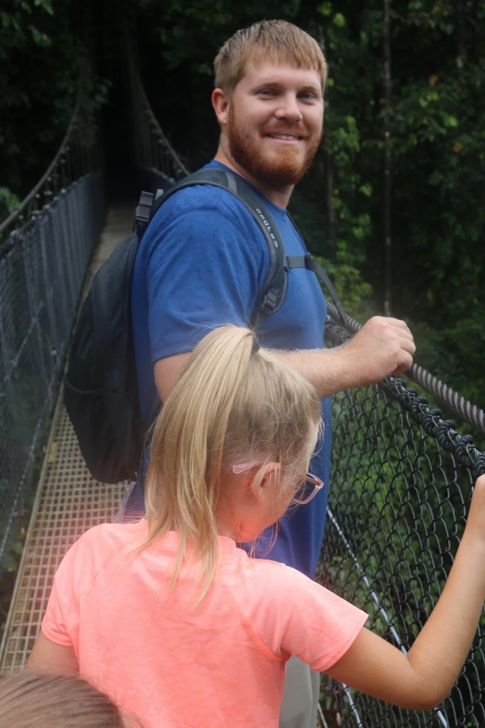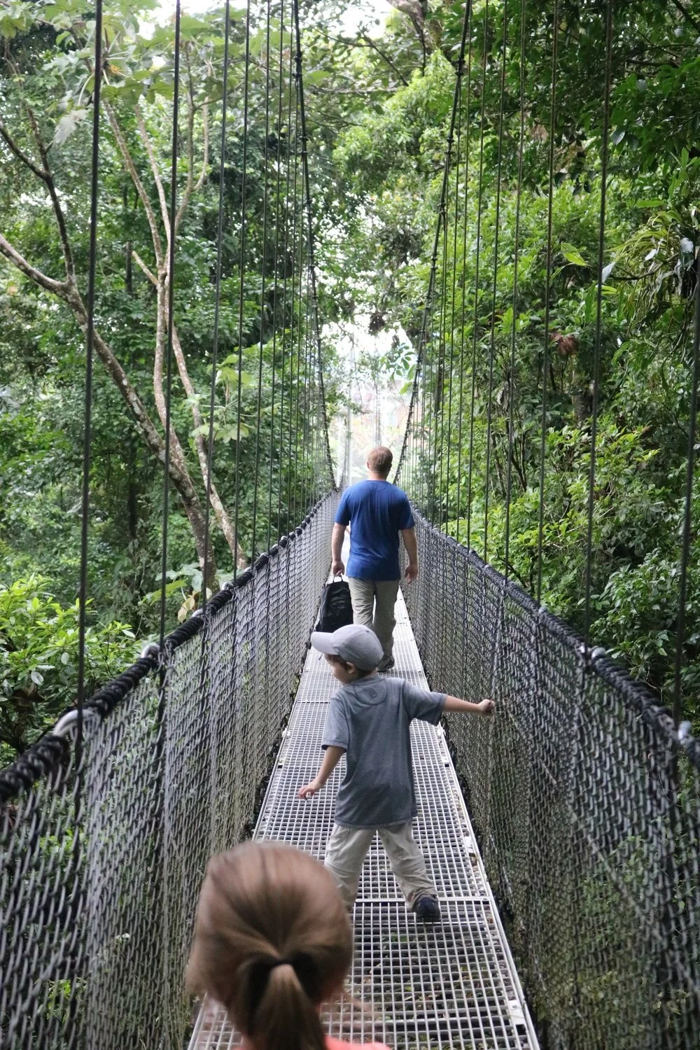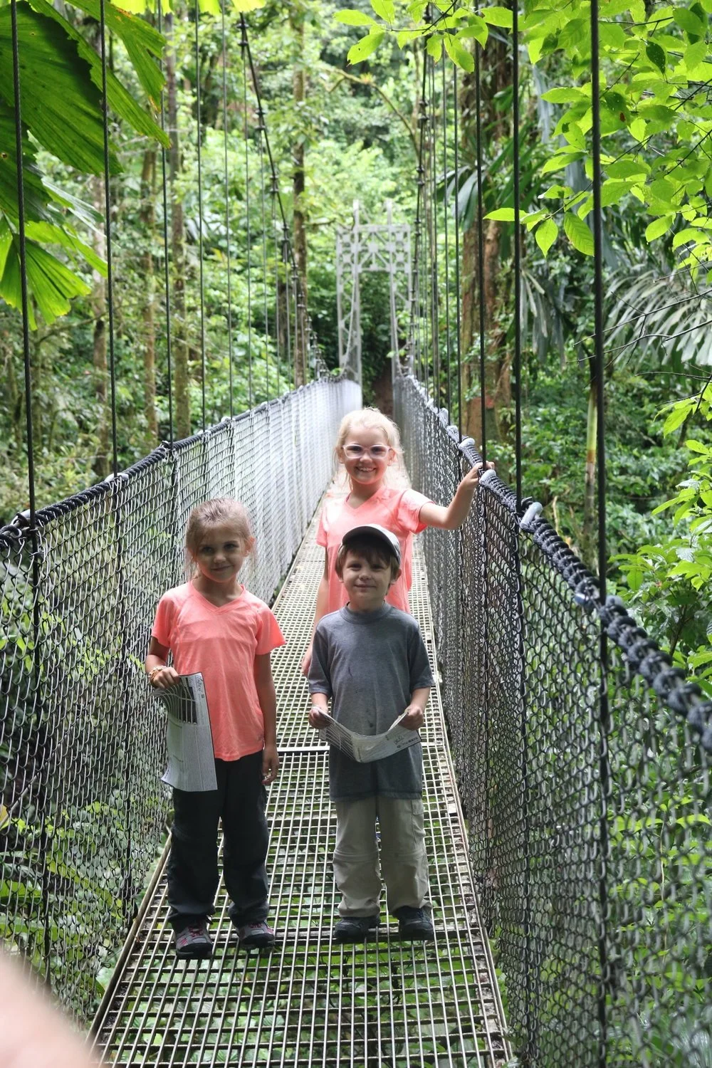 We drove 28 minutes to the Mystic hanging bridges. We warned the kids it was a small hike, less than 2 miles. We left out the small detail of "hanging" bridges. We gave them a map and let them be our tour guide. They thought they were adventurers. We walked through the trail and came across our first bridge. Chloe and I panicked, we are both afraid of heights. My legs felt like jello going across the entire bridge, Ben and Cali found it hilarious to bounce the bridge and freak us out. I couldn't look down, so Ben took pictures for me. We finally made it across to find out there were 5 more. The kids had a blast, they saw a waterfall and critters. Unfortunately we did not spot any monkeys or birds. We finished the trail in less than 2 hours.