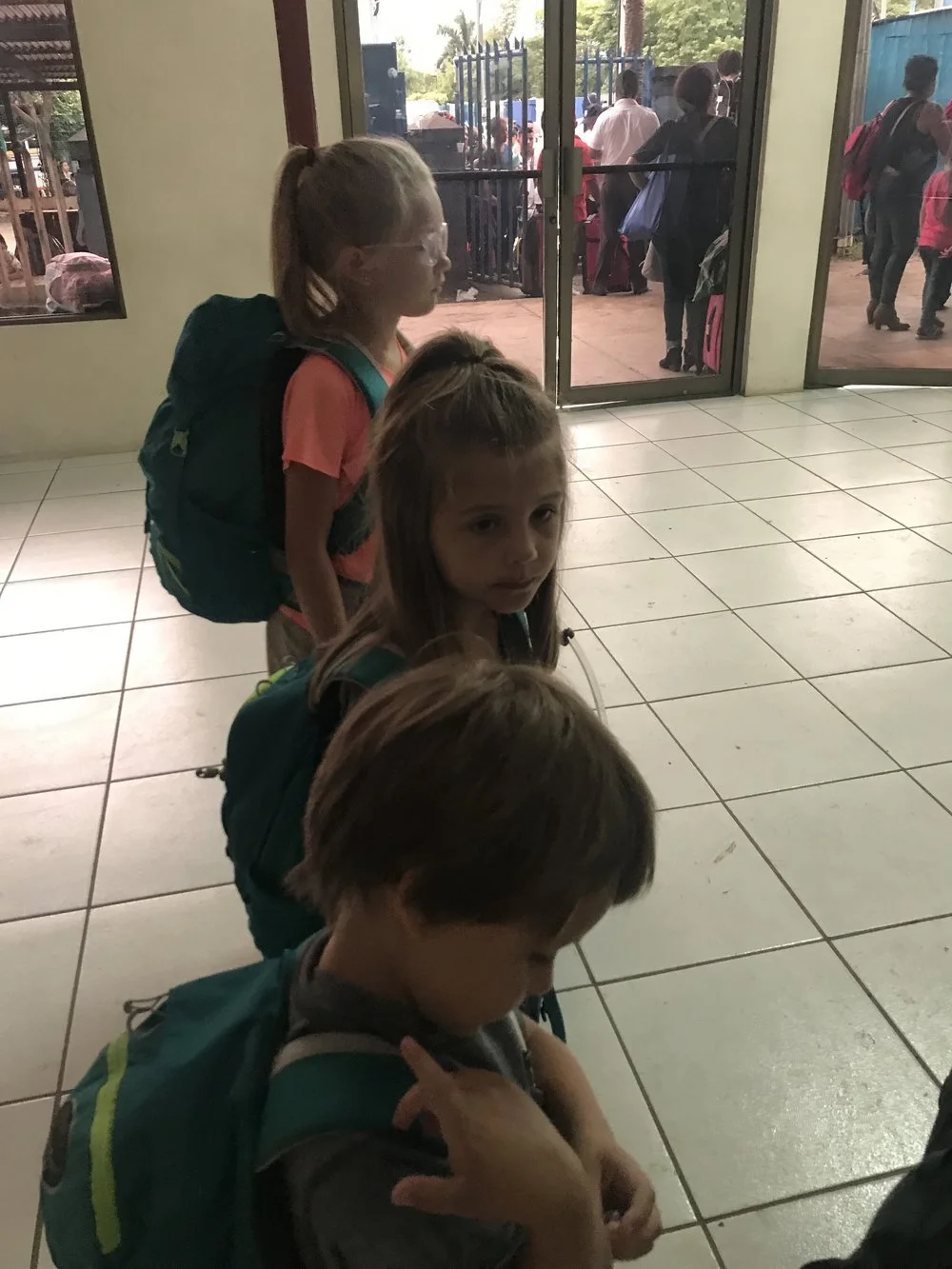 After renting the car we went to the Costa Rica border to get our entering stamp. The line was huge. Our guess was 300-400 people in line. We got in line and had multiple people tell us we could go to the front since we had small kids. We finally got out of line to go try. We stood up there for a while before the border was even open. Once opened the polica was very rude, he would let me and the kids through but said Ben would have to go stand in the line and wait. We told him that we were together and couldn't leave without him. He just shrugged his shoulders and went on his way. We eventually went back and stood in the line. Luckily the line moved fast, it only took one hour and 15 minutes to get our stamp. We had to show proof of leaving the country. This border was really strict compared to all of the borders we have crossed before.