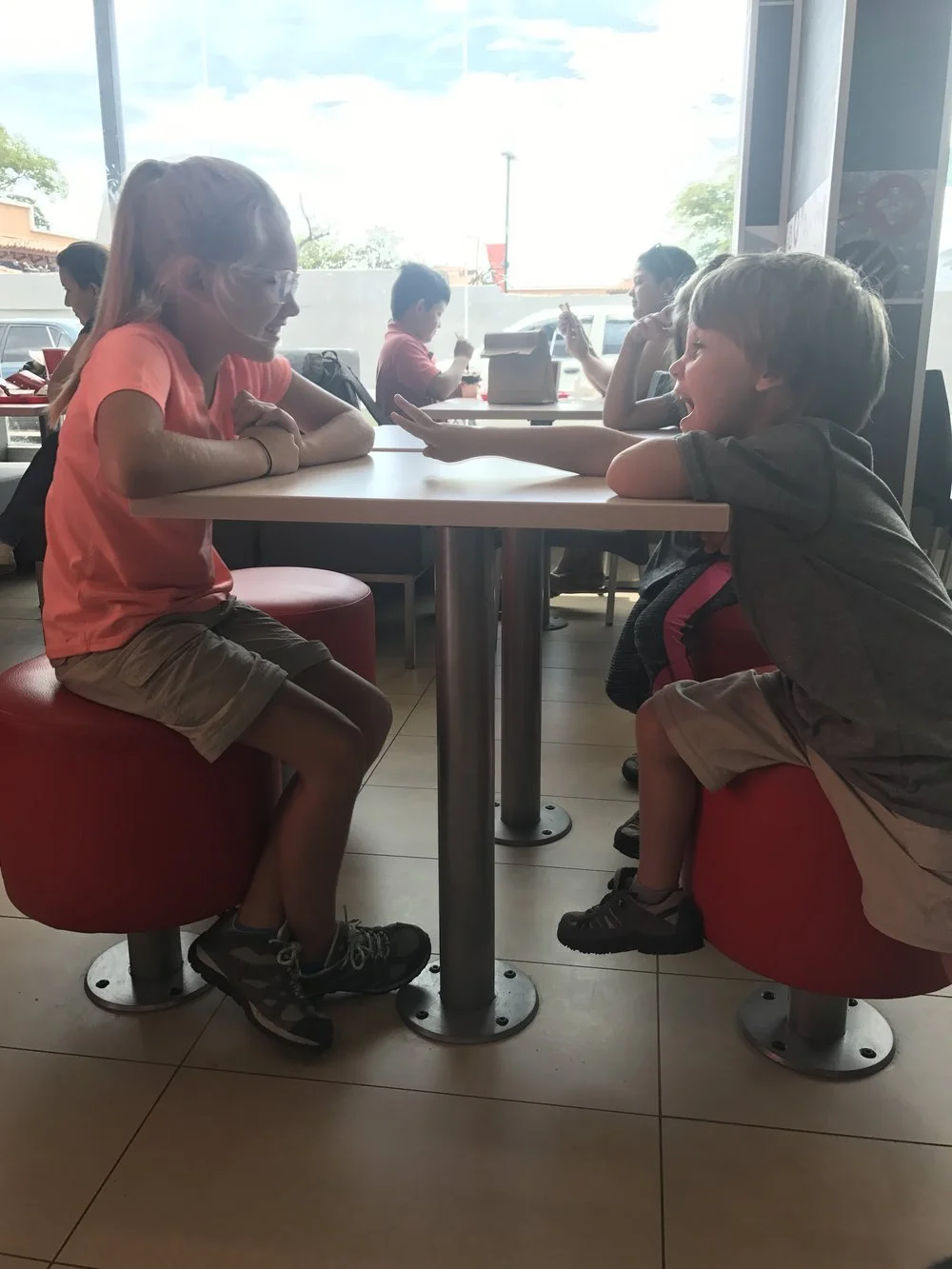 We went in search of a restaurant. The place we tried to find was impossible to find. We gave up and stopped at a little Mexican restaurant, thinking we couldn't go wrong there. Well we were wrong, the food was not good. Ben had fajitas or should I say chicken with bbq sauce. We had quesadillas and chicken tacos. All the chicken had BBQ sauce on it and nothing else. The kids only ate because they were hungry.