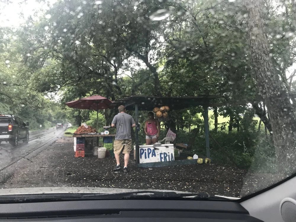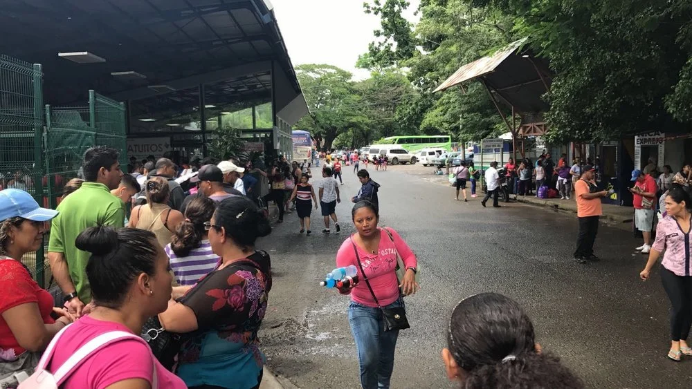 We started our day really early. Our goal was to beat the traffic to the border. we had to wait an extra 20 minutes before we left due to the rain. It was raining really hard and we didn't want to get soaked loading the car. We drove an hour to the border and luckily hit no traffic. We parked in front of the rental car company and waited for them to open for 30 minutes. They had a security guard try to open Bens door and that did not like that at all. He was asking what's we were doing sitting there and then proceeded to tell us they opened at 8:00 am, like we didn't already know that. People in Central America are very intrusive and controlling. We have had more than one incident that this has happened. We had a guy make Ben park up further (maybe a foot) because he didn't like the way we parked. This is just one of the many things Ben has dealt with driving over here. He doesn't like controlling people but he hasn't went off on anybody yet. The horn blowing over here is insane too. They honk for everything. Back to our day, we returned the rental car and walked to the immigration office. We had people trying to sell us papers that we later found we didn't even need. We crossed the border after getting our exit stamp which only cost $3 each. We planned on riding a bus to San Jose but we passed a rental car company and decided to price it. It wasn't much more than what we would have paid for bus tickets and taxis for five people.