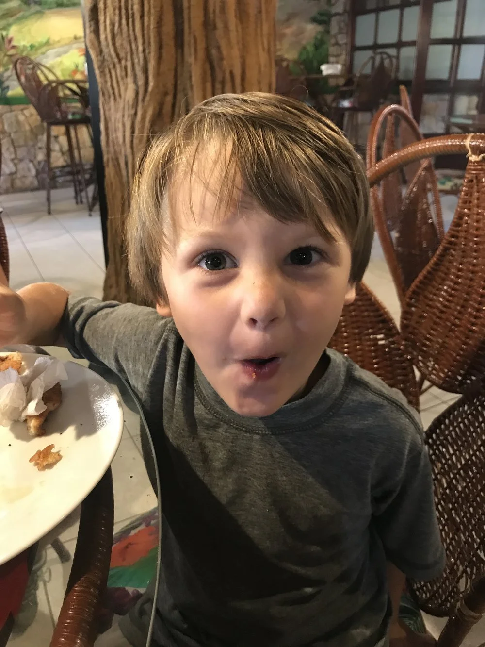 We went down stairs for our complementary breakfast. We weren't expecting much but to our surprise they had a menu and a fruit bar. The little ones ordered french toast and we ordered eggs and bacon with toast. We all just shared food, Chloe had a plate full of fruit. She had some rambutans which we didn't care for but she loved. She was in heaven with the assortment of fruit. The kids all cleared their plates.