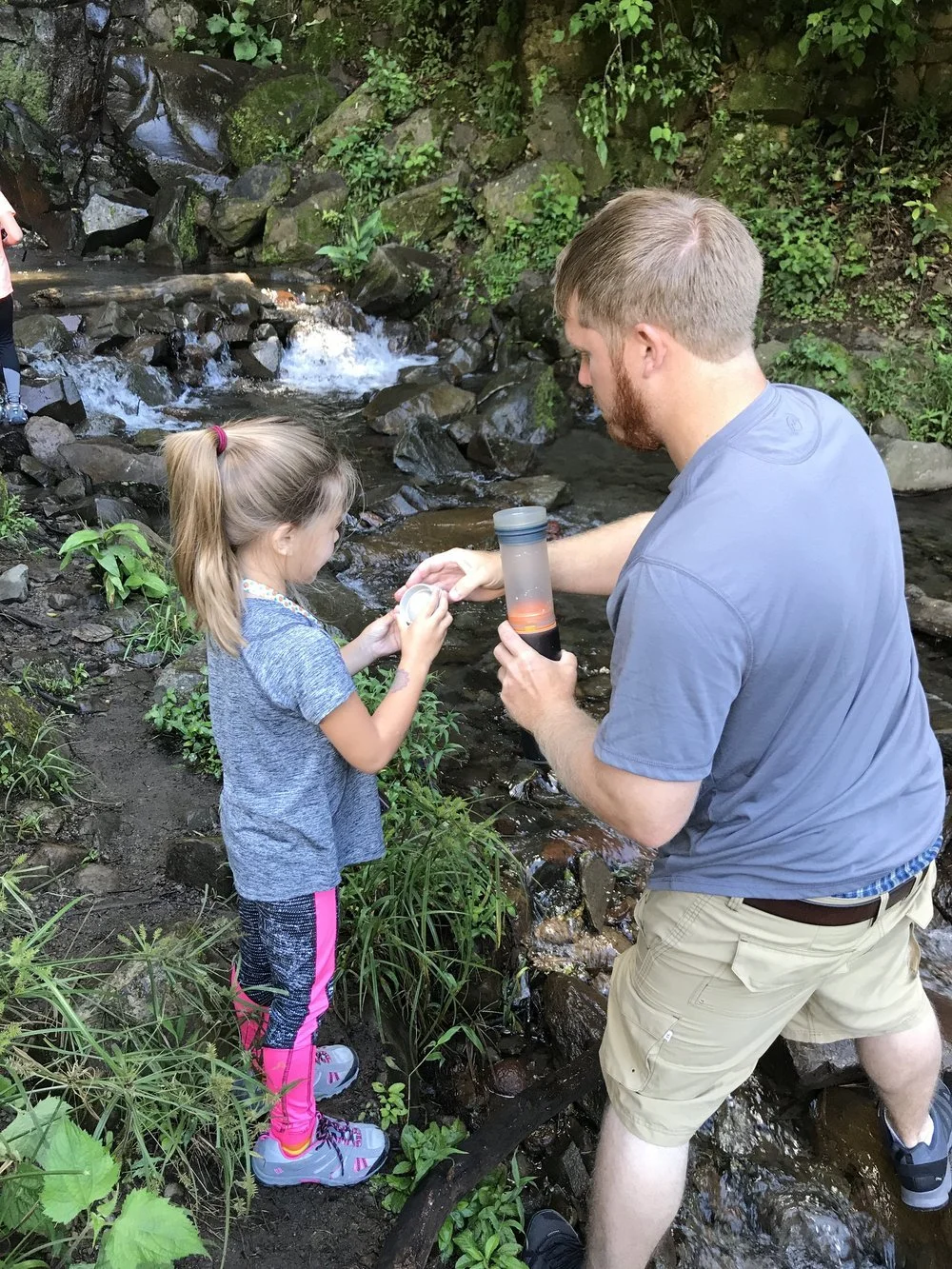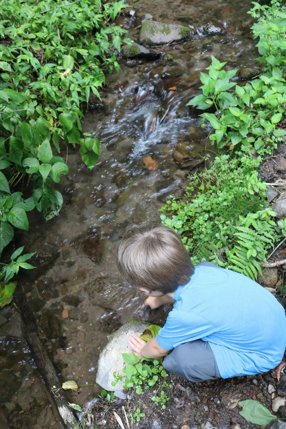 We arrived at the trail and started are hike. It was all uphill on the way up. The kids got tired a few times but we would encourage them to search for things, like butterflies or water. Our most valuable thing we have purchased for the trip was the GRAYL Ultralight Water Purifier [+ FILTER] BOTTLE. We bought two on Amazon, they aren't cheap but they are amazing for us. We would stop at each water stream and fill up our bottles. They are safe and it was a big help with getting the kids to keep going. They made it a game, who could find the water first.