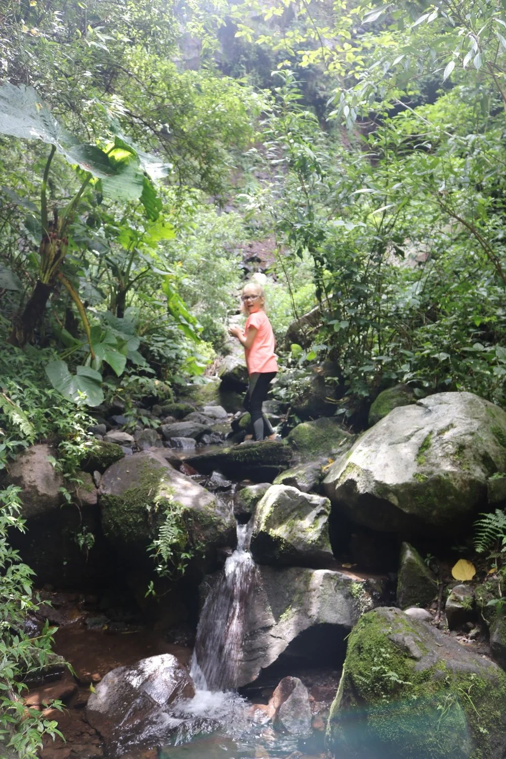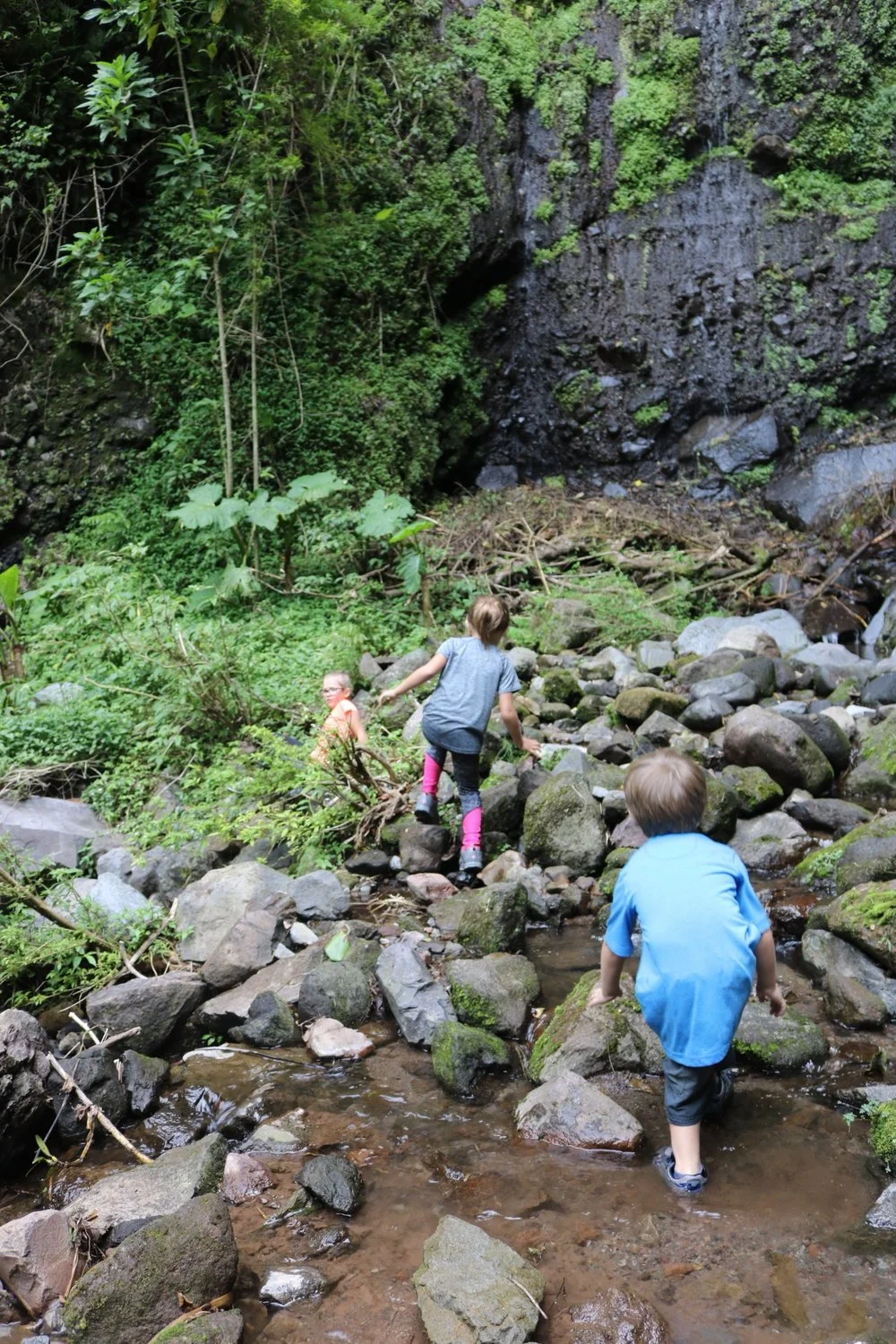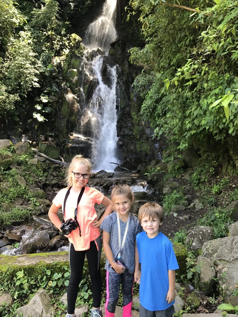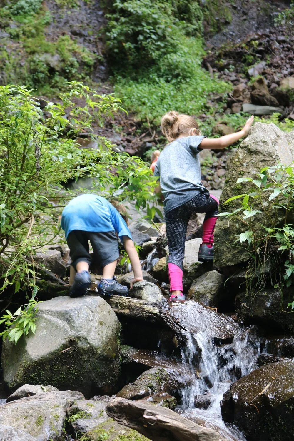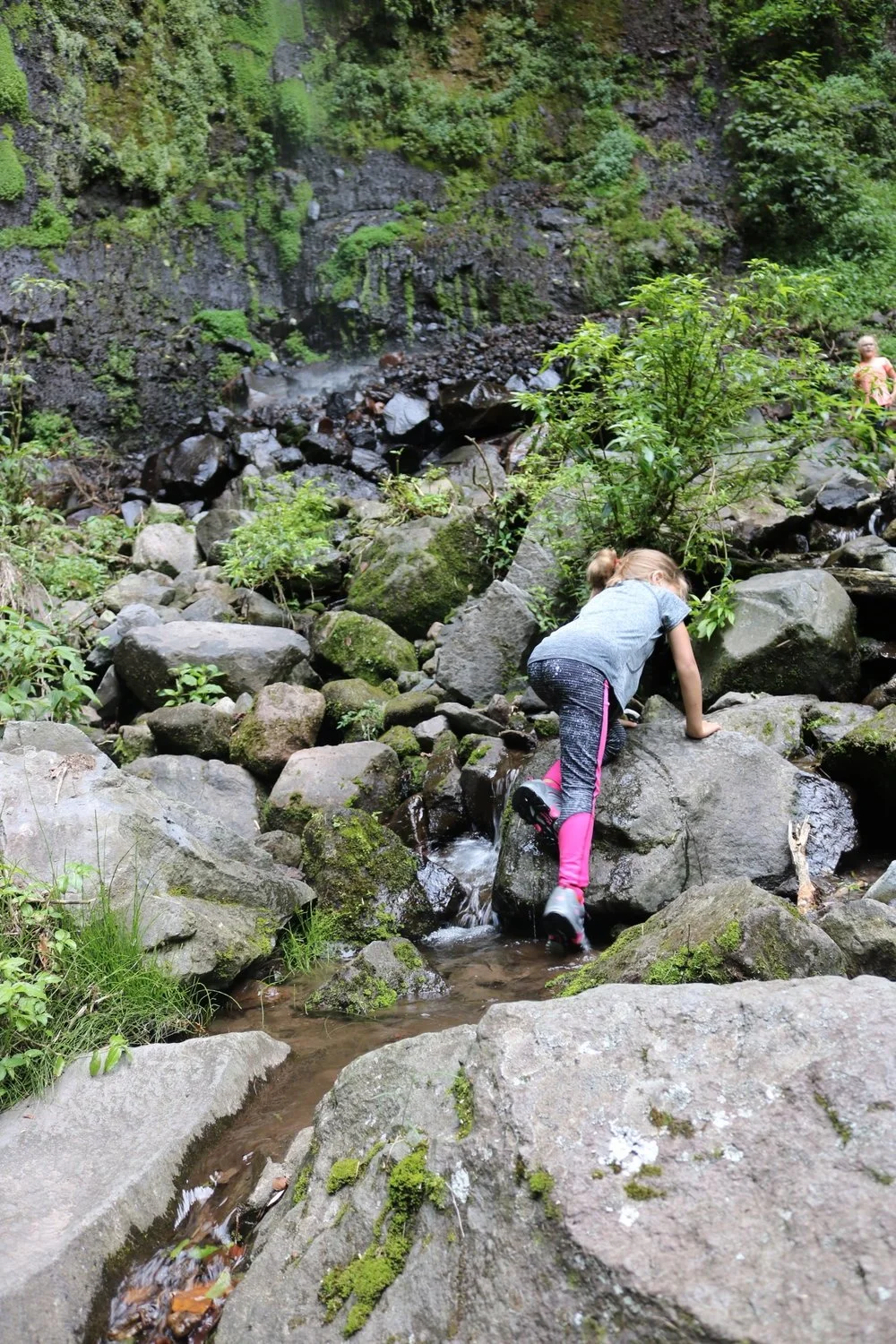 We finally reached the top, the waterfall was well worth the hike. We were surrounded by rock walls and this huge waterfall just pouring down. The kids wanted to go all the way to the water fall to touch it. So we did, it was freezing. We took a break for about 30 minutes to give the kids a break, but instead they played all over the rocks and water. They loved it.