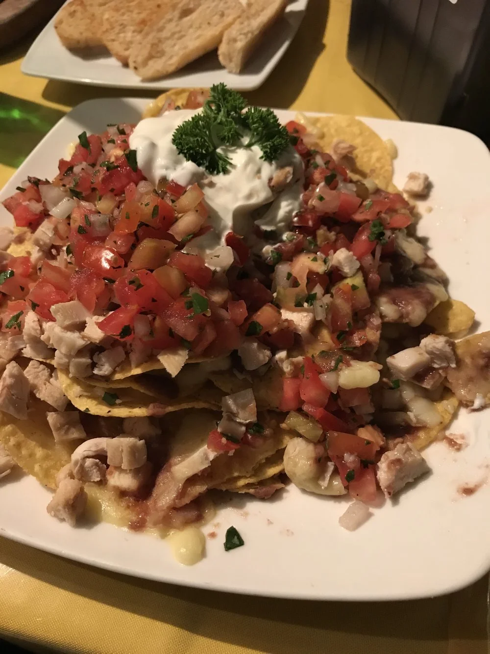 We went to eat dinner at this Argentinian restaurant. The kids got lucky with pizza and I had the Nachoes Rancheros con Pollo (chicken nachoes). They were delicious but the plate was piled high, it would have been enough for 2 people. Ben got the chicken skewers and said they were great.