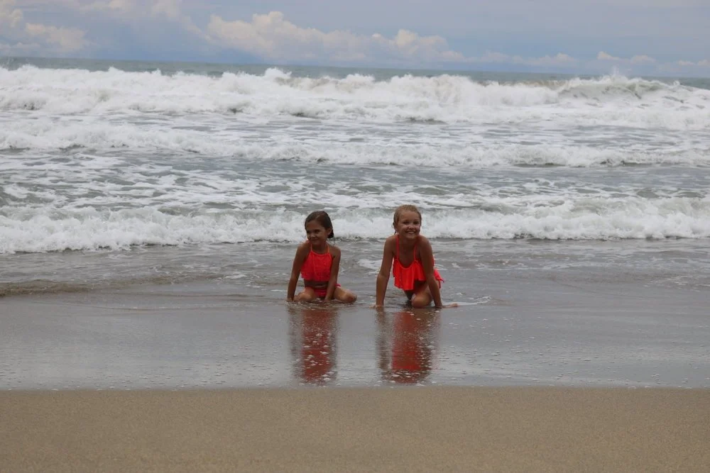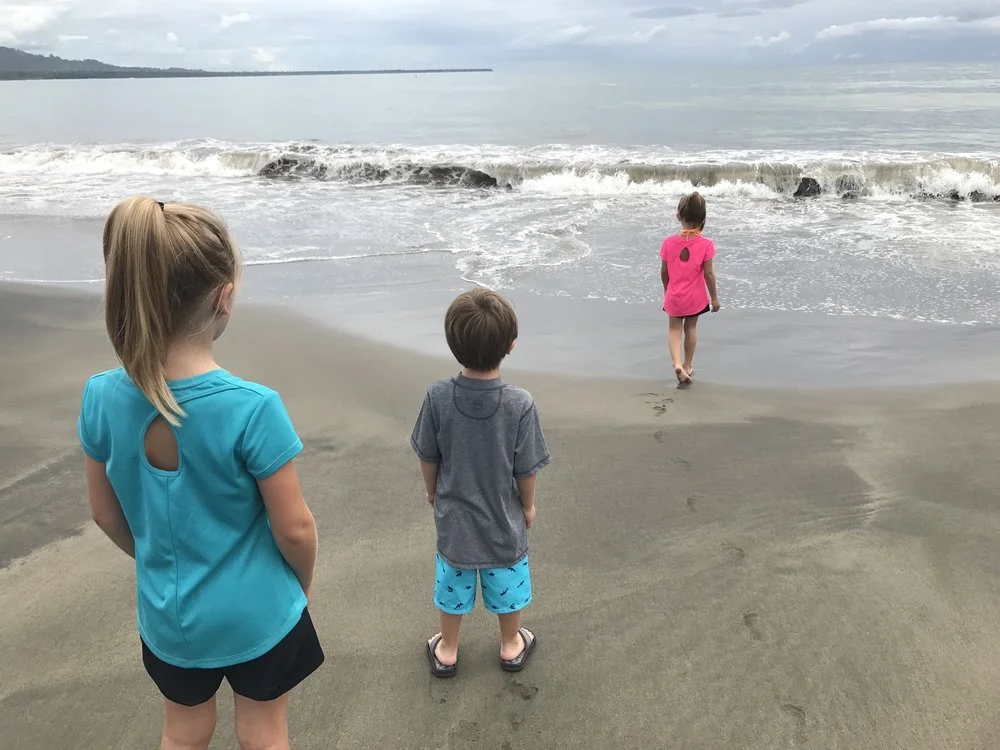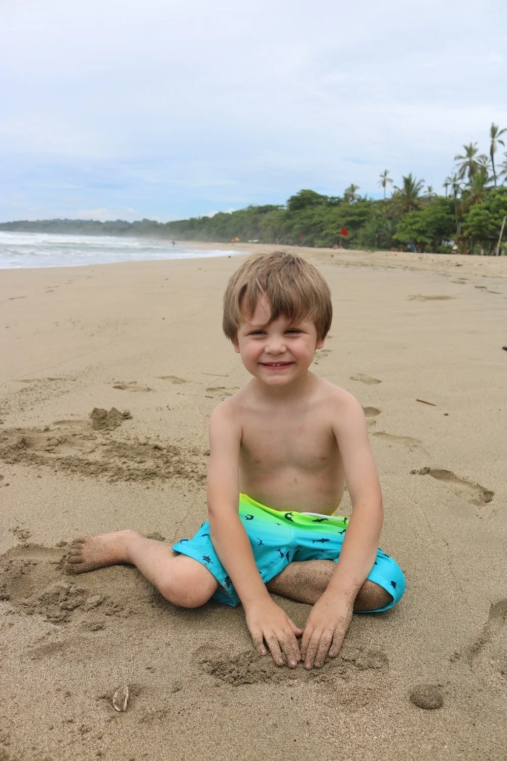 We headed to Playa Negra (Black Beach) with lots of sunscreen in hand. We haven't had much sun this year so we all resemble Casper. The kids had a blast on the beach. We started walking down the beach and we walked for 1.5 hours. We found crabs, seashells, fish, hermit crabs, and big waves. We finally stopped and let the kids hang out in the water and build sand castles. They were covered in sand from head to toe, but they had a blast.