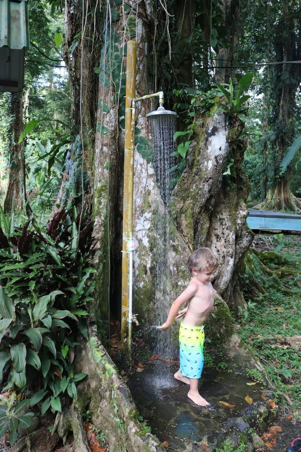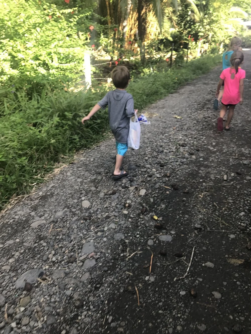 The kids woke up thinking they were starving so they had Froot Loops. They went outside as soon as they ate breakfast and swung in the hammocks. We looked for monkeys but no such luck. We enjoyed a cup of coffee while the kids got dressed.